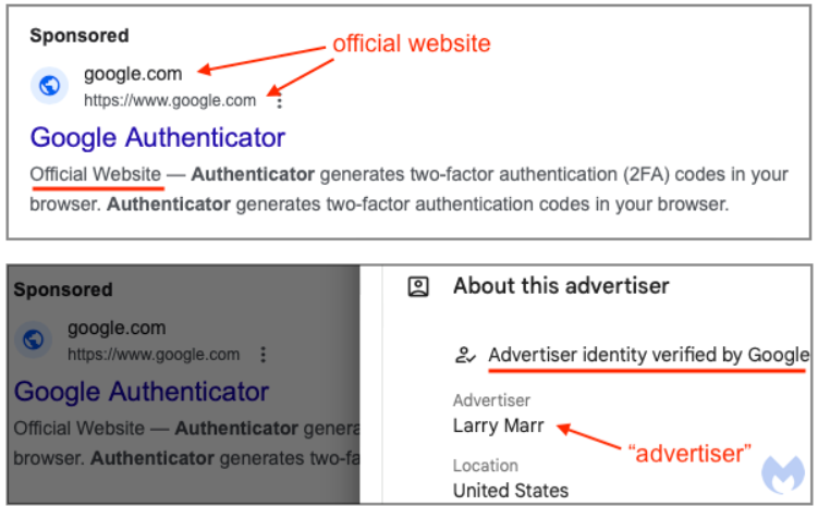 One notorious example of the SEO poisoning threat is the infamous Google Authenticator scam.