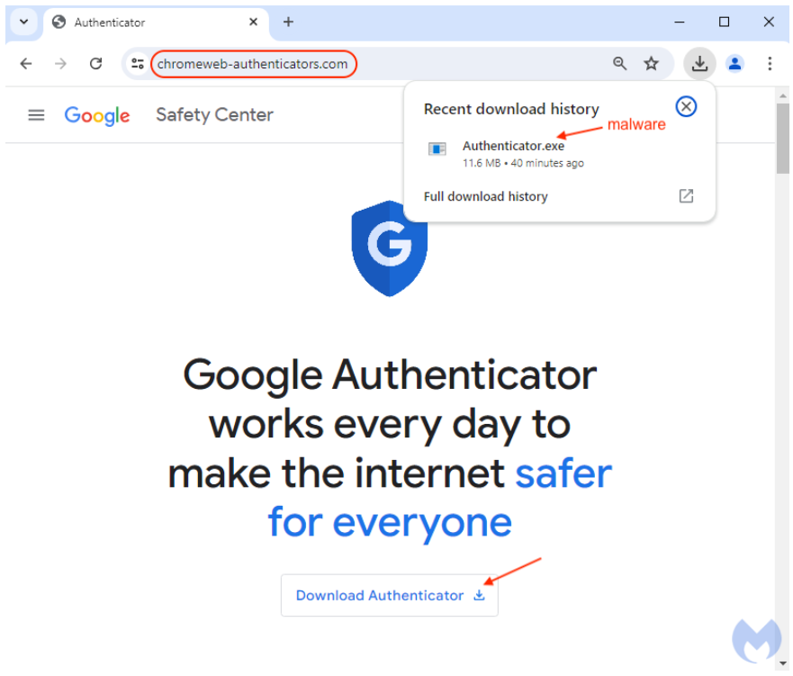 Cybercriminals created a fake version of the Google Authenticator website, using paid advertisements to place their malicious site at the top of Google’s search results.